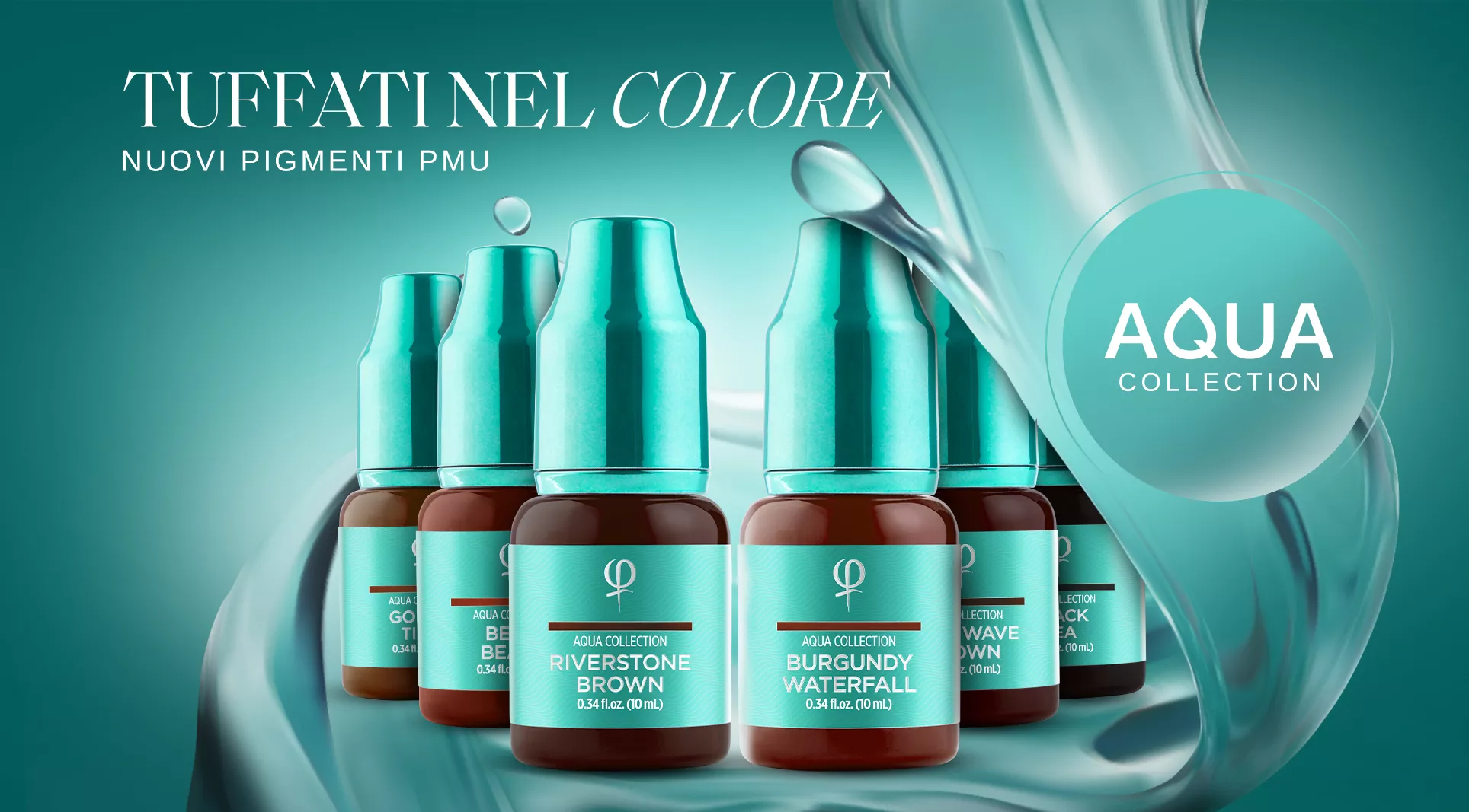 Presentiamo la Collezione Aqua, una nuova generazione di pigmenti PMU progettati con una formula a base d'acqua per un'applicazione impeccabile e risultati di lunga durata.