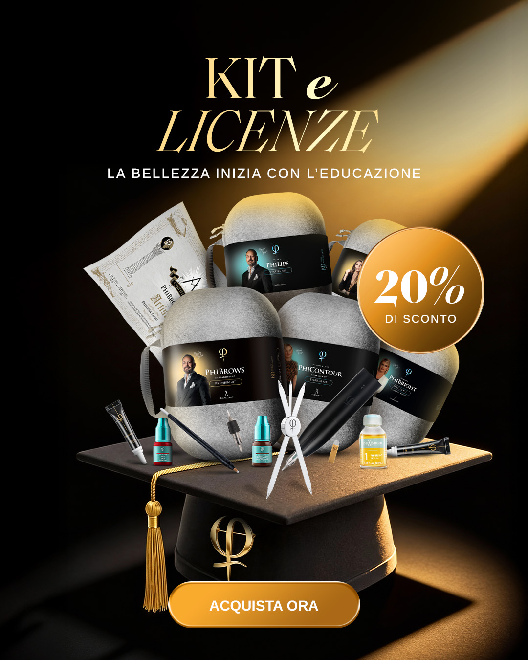 Vedi opzioni PhiBrows Blade and Shade Kit S è un set di prodotti di alta qualità realizzati in plastica oxo-biodegradabile. Il kit contiene materiali monouso completamente sterilizzati per rendere naturali i risultati del trattamento blading and shading e i trattamenti stessi sono stati eseguiti in un ambiente sterile. PhiBrows Blade and Shade Kit sontiene: - Strumento Phi Blade and Shade per uso singolo con lama Phi 304 Blade e lama Phi 3R Shading Blade - applicatore con design ergonomico della maniglia e spazzola di cotone sulla parte superiore per l'applicazione dei prodotti Stroke Marker - 4 tamponi igienici usati per applicare creme dopo l'uso, anestesia o altre soluzioni per la pelle - batuffoli di cottone per pulire la pelle durante il trattamento - mini batuffoli in cotone per l'applicazione di anestetico dopo il primo passaggio della lama o di qualsiasi altra soluzione per fermare l'eventuale sanguinamento - pinzetta per la manipolazione di mini batuffoli di cotone - anello portapigmento con il supporto e con l'accessorio per la pulizia della lama Tutti gli articoli inclusi nel kit sono monouso e realizzati in plastica biodegradabile, che fornisce non solo la massima precisione e igiene durante il lavoro, ma sono anche rispettosi dell'ambiente. Una scatola contiene 10 kit.